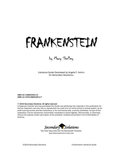 Download Frankenstein Literature Guide Secondary Solutions Answer Key Epub